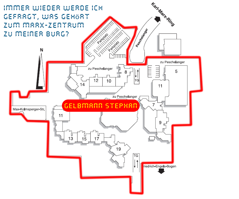 Die Grafik unten zeig die klar und sauber umrissenen Wohnanlage, das "Marx-Zentrum", meine Burg.