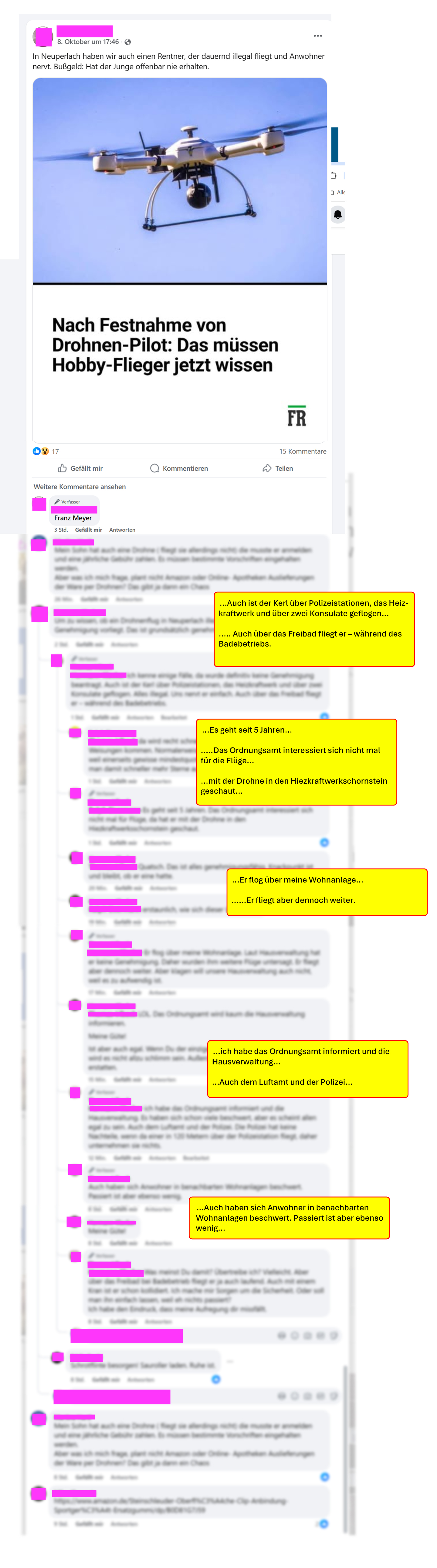 Die Hetze von meinem Stalker gegen mich und meine Drohnenaufnahmen, gehen in der Gruppe "Du bist ein Neuperlacher, wenn du ...." weiter.