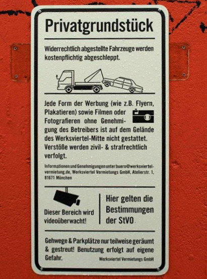 ein „Fotografier und Film-Verbot ohne Genehmigung des Eigentümers Werksviertel Mitte"