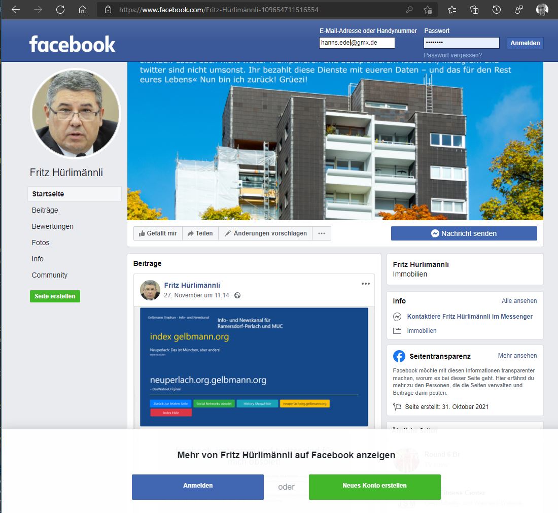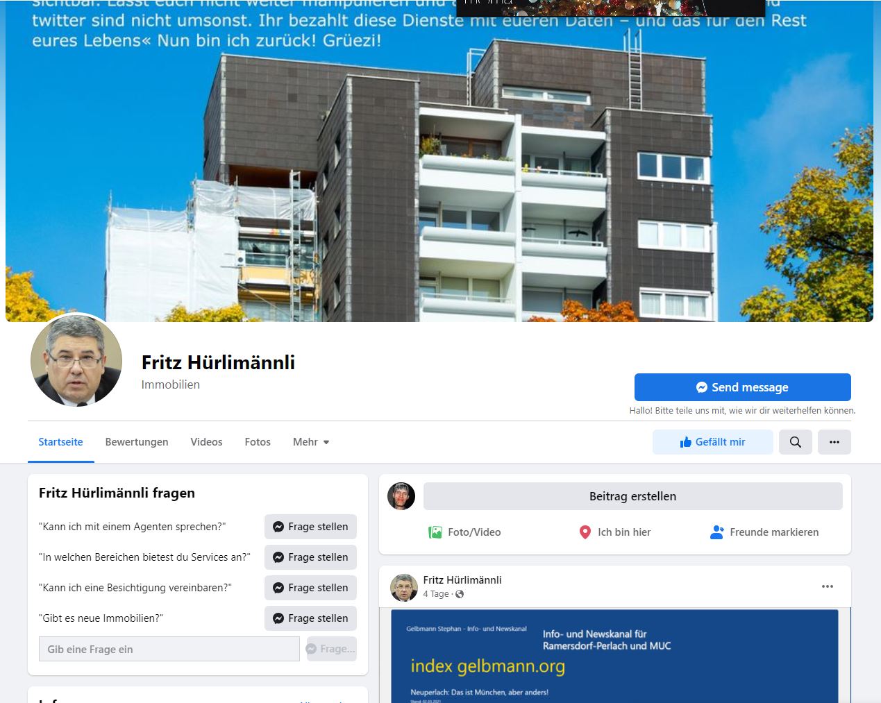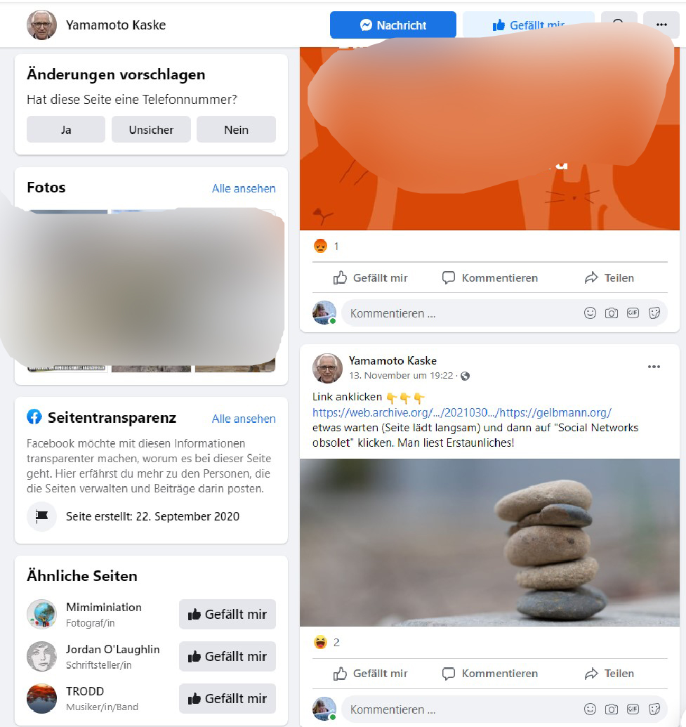 auf meine Facebookseiten, mehr aber noch, auf seinen Facebookseiten und auf neu eingerichteten Fake-Facebookseiten,