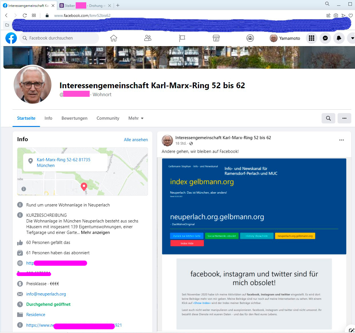 Foto #1/139 - Post und Kommentare meines psychisch kranken Stalkers